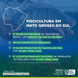 Mato Grosso do Sul foi o segundo maior exportador de tilápias do Brasil no ano passado, com receita de US$ 4,2 milhões. Mesmo assim o Estado foi o 5º do País em produção do pescado no ano passado, com 32,2 … Continue lendo Segundo maior exportador de tilápias, MS foca na piscicultura para ampliar rol de proteínas animais