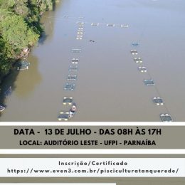 A Companhia de Desenvolvimento dos Vales do São Francisco e Parnaíba – CODEVASF oferece gratuitamente no dia 13 de julho, o Curso de Piscicultura em Tanques Rede, no auditório Leste campus da UFPI em Parnaíba, de 8h as 17h. Os principais tópicos do curso estão relacionados abaixo: 1- Potencial Brasileiro … Continue lendo Curso de Piscicultura em Tanques Rede será realizado gratuitamente na UFPI