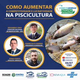 Aumento de competitividade e lucratividade na atividade serão temas abordados O Sebrae em Rondônia realiza na próxima terça (6/07), às 19h, o evento on line “Como aumentar a produtividade e competitividade na piscicultura”. O evento será transmitido no canal do … Continue lendo A piscicultura como modelo de negócio será debatida em evento on line