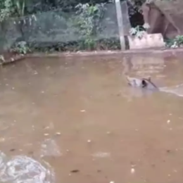 Anta de 180 kg é resgatada após cair em tanque de criação de peixes – CREDITO: CAMPO GRANDE NEWS